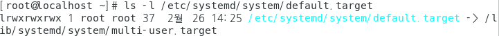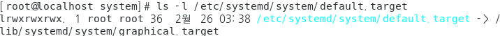 현재 시스템에 설정된 런레벨은 링크 파일인 /lib/system/system/default.target에서 알 수 있다.
